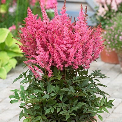 Саженцы астильбы Younique Pink – шикарные миниатюрные кусты, которые привлекают очень сильным и длительным цветением своих пушистых ярко-розовых метелок. После срезания отцветших соцветий можно наблюдать повторное цветение. Этот компактный куст идеально подходит для создания небольших альпинариев. Также саженцы данного сорта используются для обозначения передней линии цветения. Астильба любит влагу и хорошо растет в полутени. При хорошем поливе данный сорт будет замечательно расти и на солнечных участках.