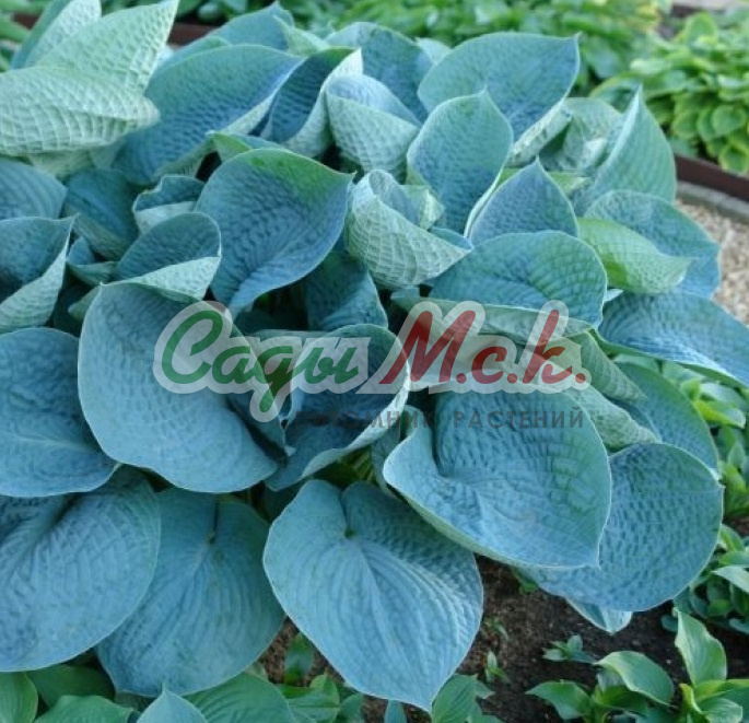Хоста Big Dаddу – крупное, мощное растение с очень выразительной окраской. Это один из лучших «синелистных» сортов с крупными, чашеобразной формы, плотными листовыми пластинами, имеющими вафельную фактуру. Для многолетника характерен насыщенно-голубой цвет с матовым налетом, который в конце лета изменяется и становится практически зеленым. В июле над кустом появляются длинные цветоносы, достигающие 70 см высотой, на которых распускаются белые цветы-колокольчики, имеющие легкий лавандовый оттенок и едва уловимый аромат. Прекрасная «голубая» красавица разрастается очень медленно, особенно в молодом возрасте. Она предпочитает тенистые места, с удовольствием селится у водоемов или среди камней в альпинарии.