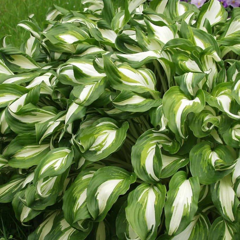 Хоста Mеdiоvаriеgаtа – прекрасное садовое растение, выделяющееся своей формой и окраской листьев. У него слегка закрученные, средних размеров листовые пластины удивительно красивой окраски: на нежном светло-зеленом фоне ярко-белые пятна, полоски и прожилки, расположенные в основном в центральной части. Многолетник хорошо нарастает, образуя аккуратные, компактные кустики высотой до 50–70 см. От других хост сорт отличается довольно ранним цветением, начинающимся в июне. Цветки крупные, нежно-фиолетового цвета, на очень высоких цветоносах. Растение неприхотливое, растет практически в любом месте, хотя на плодородных, тенистых, слегка увлажненных участках чувствует себя более комфортно.